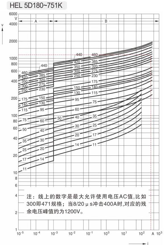 橫軸是沖擊時間即浪涌波型寬度,縱軸是沖擊電流峰值,