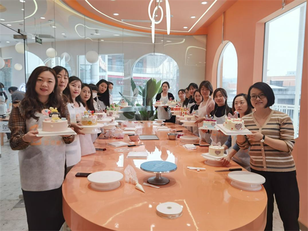 活動中,西點老師首先分享了烘焙知識,教大家如何辨識動植物奶油,講解植物奶油與食品添加劑的危害,講解結(jié)束后,老師示范蛋糕裱花技巧并指導大家制作完成今天的主題蛋糕,在充斥著蛋糕香氣的制作間里,大家興致盎然,交流心得,相互指導,精致漂亮的造型蛋糕在大家的巧手中誕生。
